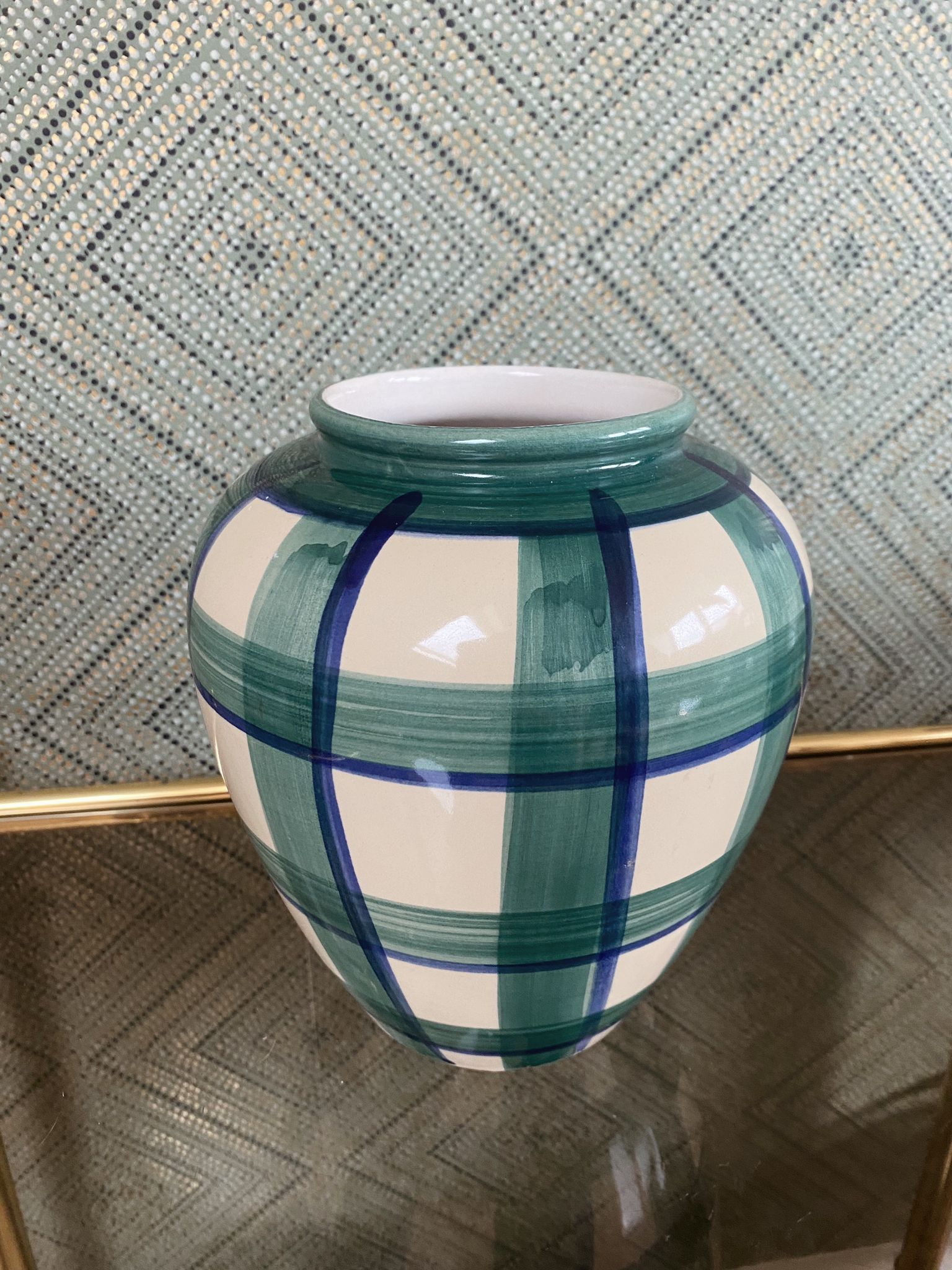 Prachtig geglazuurde Scheurich West Germany vaas, groen en blauw gestreept.