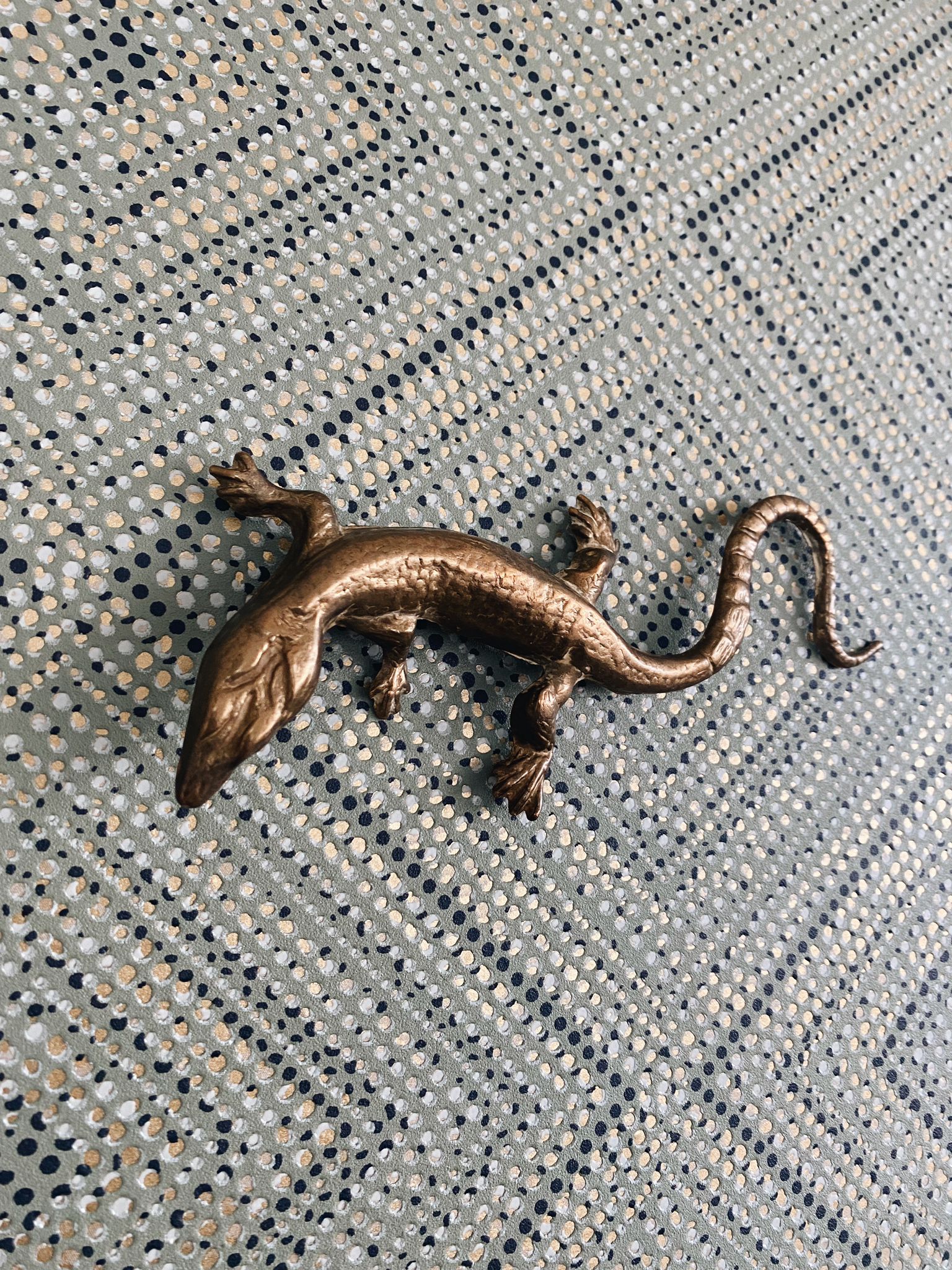 Mooie vintage salamander van messing, leuk om op te hangen.